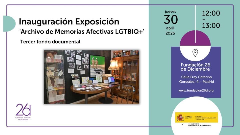 La Fundación 26 de Diciembre es una entidad sin ánimo de lucro creada para trabajar con y por las personas mayores LGTBIQ+.