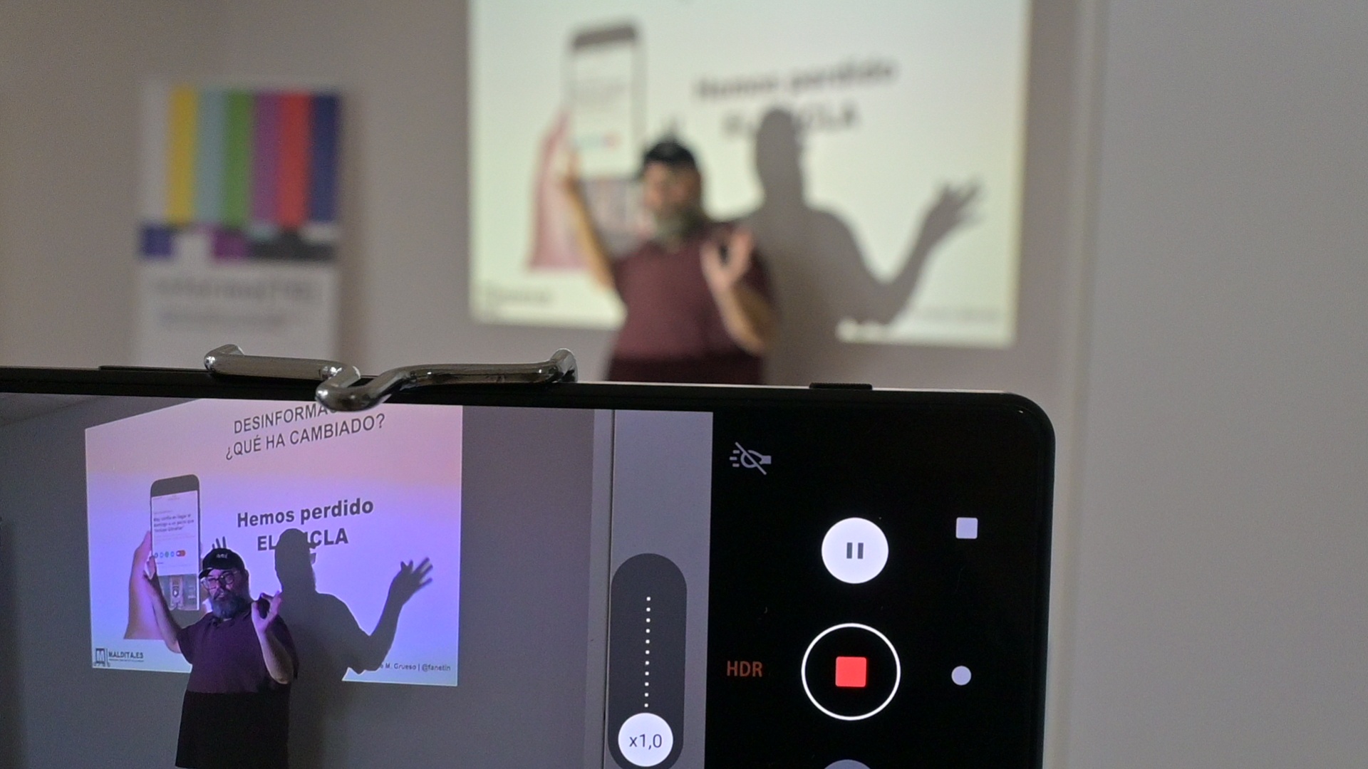 Durante la sesión formativa, Stéphane M. Grueso hizo referencia a cómo "todas las personas participamos de la conversación en Internet". Además, abordó cómo se ha producido un cambio en las estructuras comunicativas en el marco de un cambio sistémico teniendo siempre presente que "la desinformación existe desde que existe la humanidad".