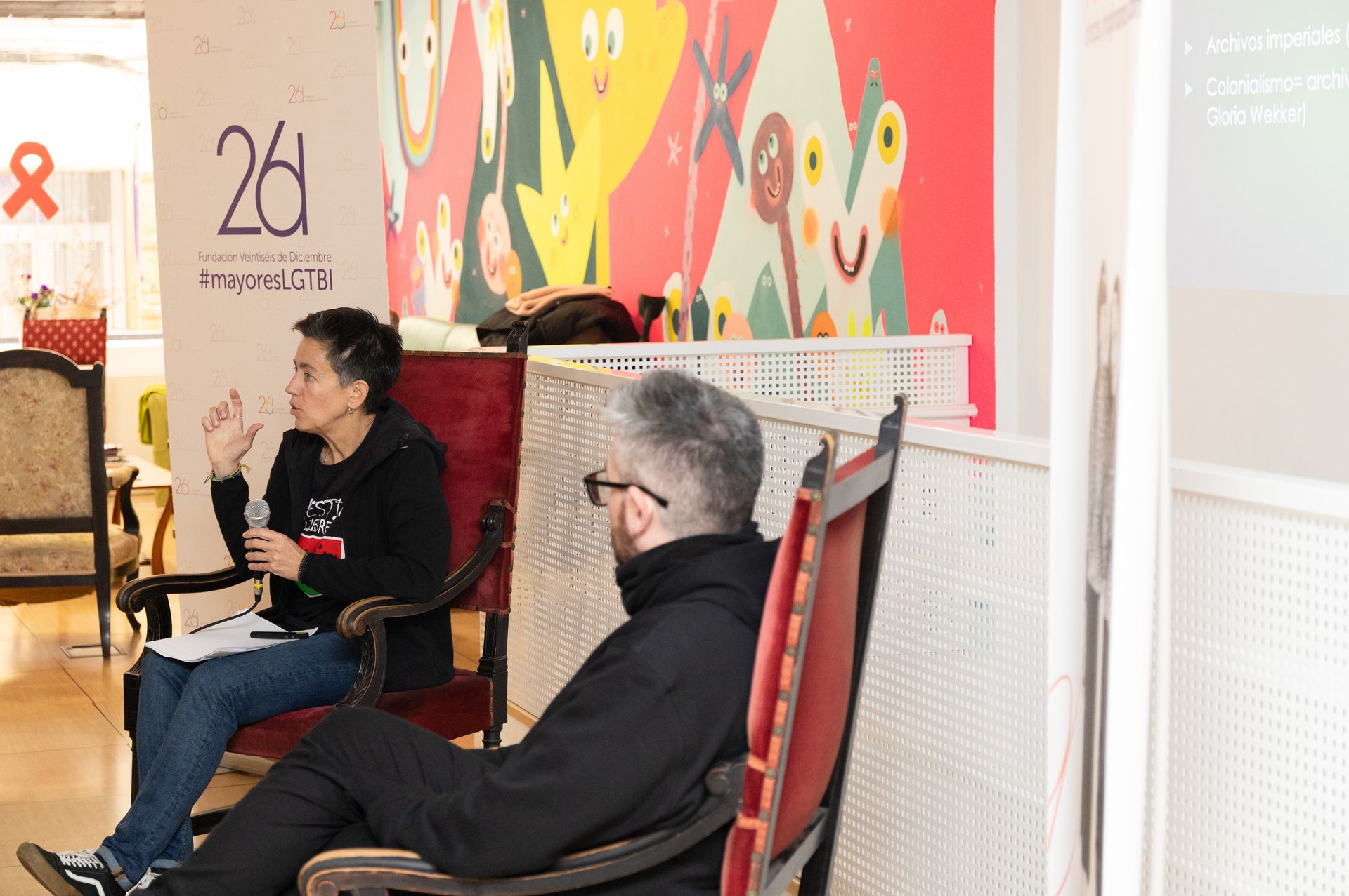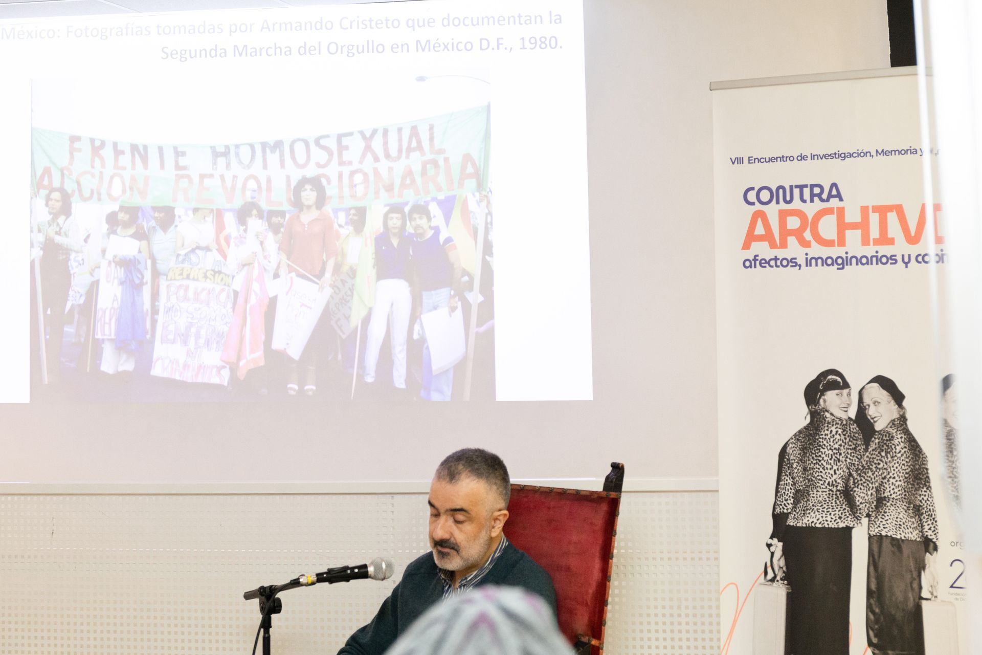 La conferencia inaugural contó con la ponencia “Fuera de los armarios y ¿dentro de los archivos?. Precariedades, afectos y redes”, de Gracia Trujillo, docente en la Universidad Complutense de Madrid e investigadora especialista en archivos de la disidencia. En su relato abordó dos ideas clave: cómo los archivos no tradicionales contribuyen a pensar y a dialogar de forma colectiva sobre el accionar de los movimientos sociales; y la urgencia de políticas públicas para preservar las memorias LGTBI, a menudo salvadas por la precariedad y afectos.