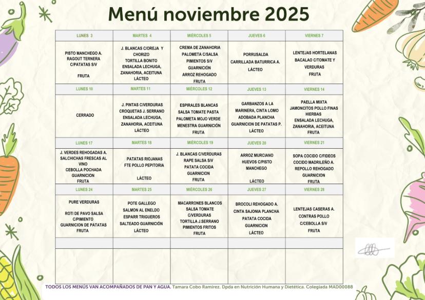 - El menú está sujeto a cambios, dependiendo de la disponibilidad de cada día.