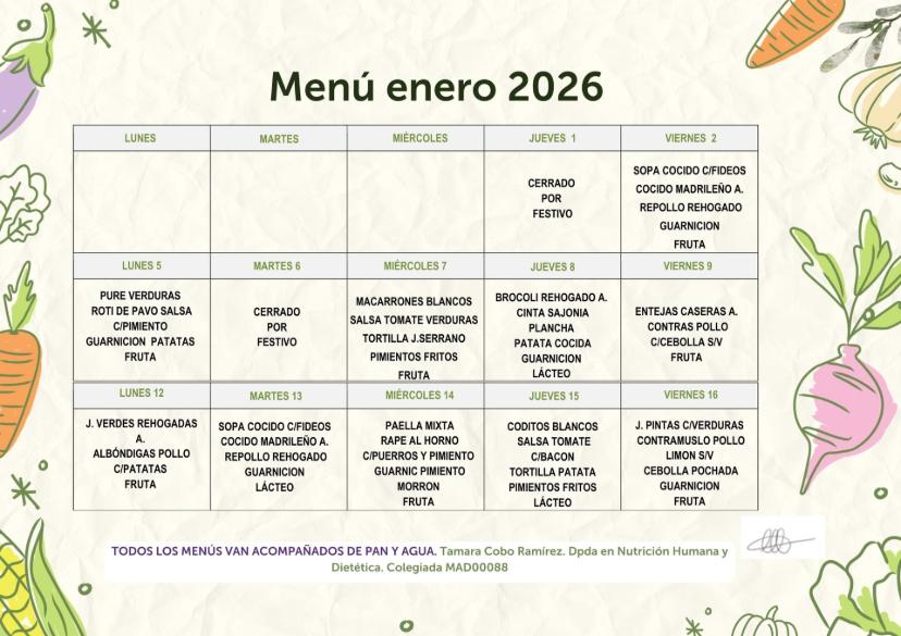 • El menú está sujeto a cambios, dependiendo de la disponibilidad de cada día.