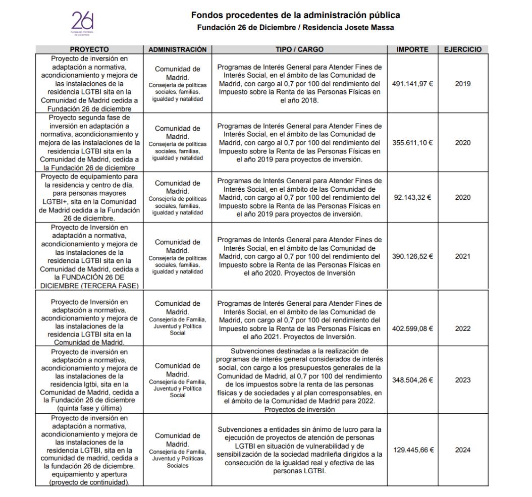 En marzo de 2018 la Comunidad de Madrid, en cumplimiento de la Ley 3/2016, de 22 de julio, de Protección Integral contra LGTBIQ+fobia y la Discriminación por Razón de Orientación e Identidad Sexual en la Comunidad de Madrid, cede un edificio destinado a ser la primera residencia de mayores LGTBIQ+ de la Comunidad de Madrid y del estado español.